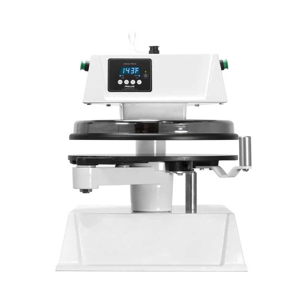• Heated Upper Platen: Features an embedded heating element in the upper platen to help the dough flow and stay relaxed after pressing.